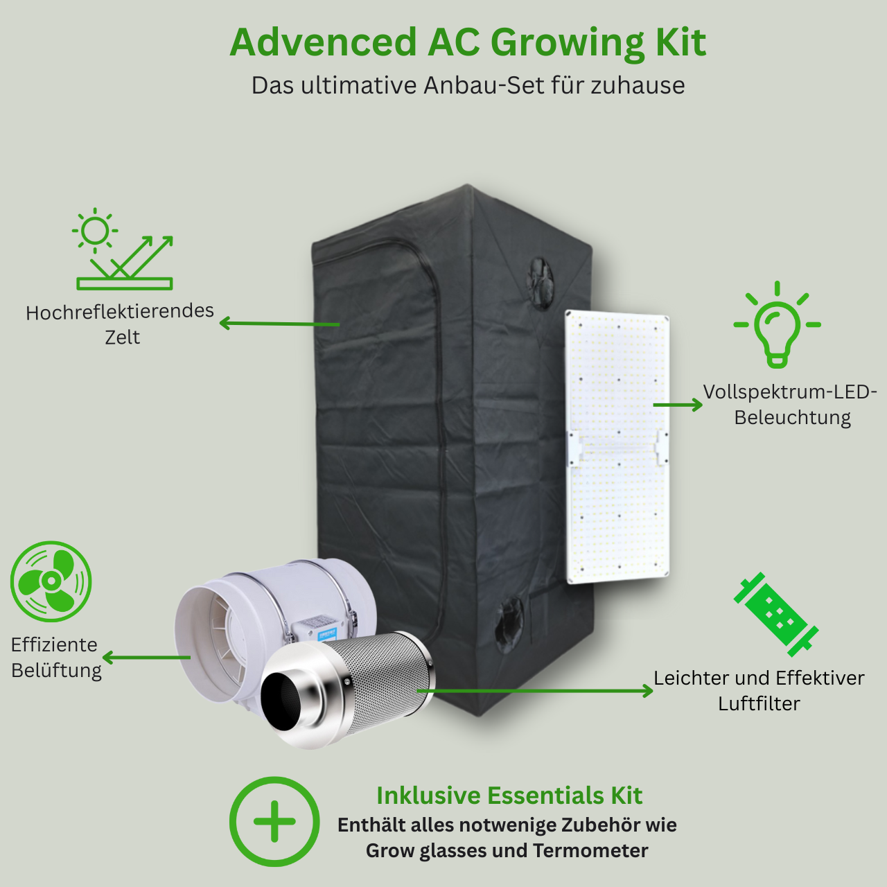 Alles, was du für den perfekten Start in die Welt des Growings benötigst. Unsere hochwertigen Sets bieten dir die ideale Grundlage, um deine Pflanzen vom Samen bis zur Ernte erfolgreich zu kultivieren. Erlebe die Freiheit und das Vergnügen, Zuhause ganz bequem anzubauen.
